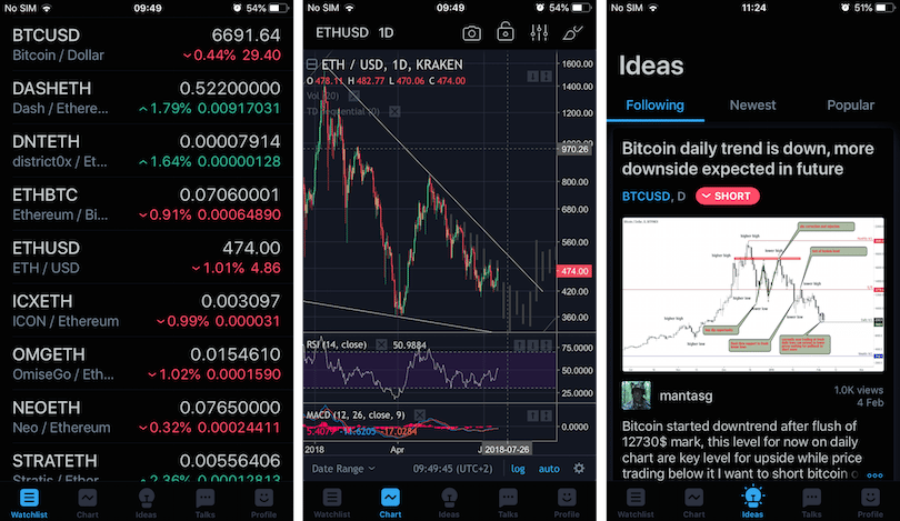 The company behind the incredible web application now has a mobile version. Before becoming a cryptocurrency app, TradingView (TV) started out as a charting and idea platform for traditional markets. You can still find just about any stock, bond or currency pair in the world on this platform.
