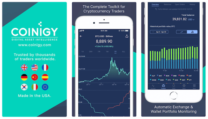 Coinigy is the new kid on the block. They focus exclusively on cryptocurrencies and provide price feeds from over 40 different exchanges. Since specialization is their game, Coinigy has better portfolio management tools than TradingView. In addition, they provide (API) tools to connect your cryptocurrency accounts directly to your charts so you can trade at a click of a button directly from the charts.