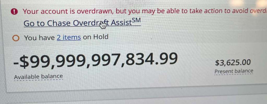 This wouldn’t be the first time a JPMorgan Chase account has been overdrawn by $99 billion.