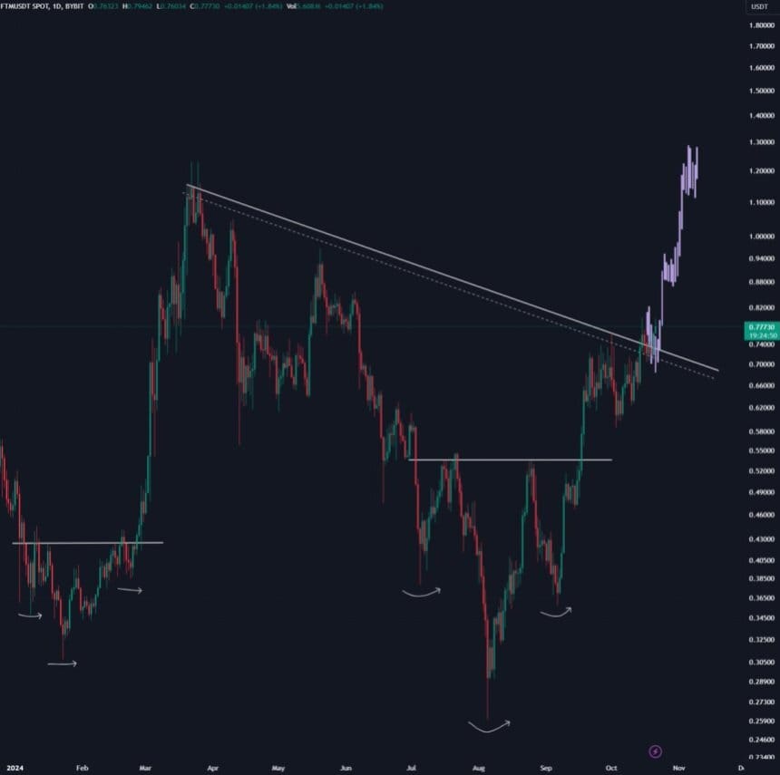 Meanwhile, other market watchers suggested that FTM will hit a new ATH before its token migration. As reported by NewsBTC, Fantom is set to transition to the Sonic Network between November and December of this year.