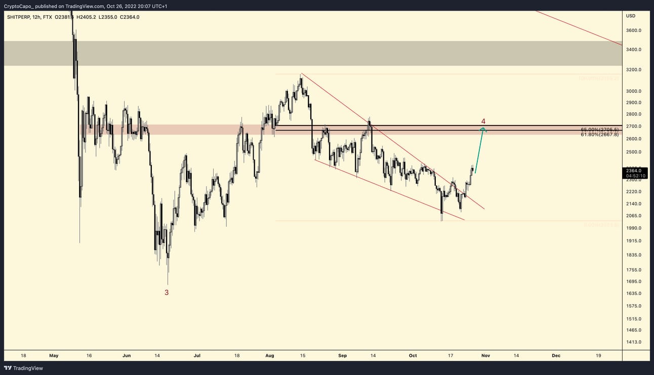 Looking at Capo’s Shitcoin Index Perpetual Futures chart, he predicts the index capturing could drop from its current $2,344 index price to about $2,150.