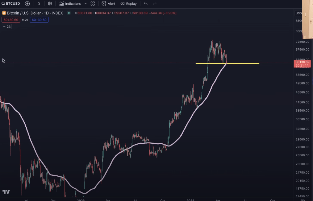“In the short term the thing to keep an eye on with Bitcoin is going to be your 100-day moving average because that is where we are right now. We just swept these lows [at $60,000]. So that’s what I would keep an eye on.
