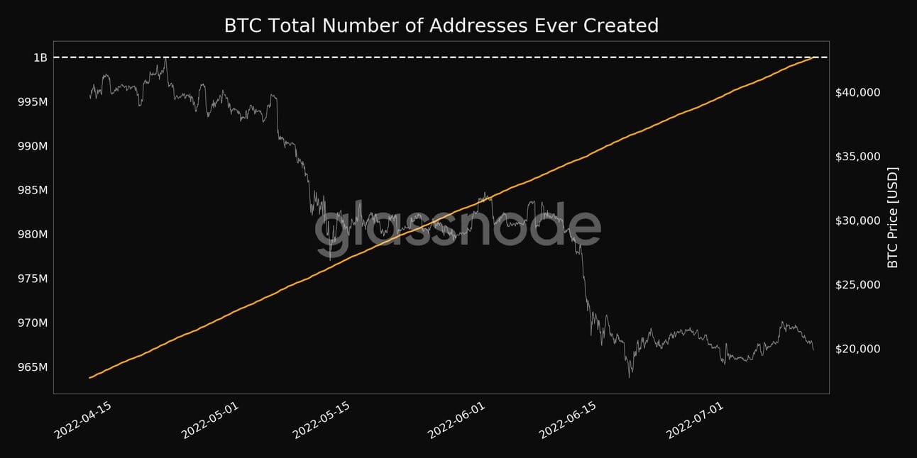 “Bitcoin (BTC) total number of addresses ever created just went above 1,000,000,000. Current value: 1,000,002,559.”