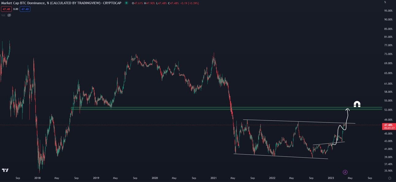 A widely followed cryptocurrency analyst says Bitcoin’s (BTC) dominance in the crypto markets is about to intensify, spelling trouble for altcoins.