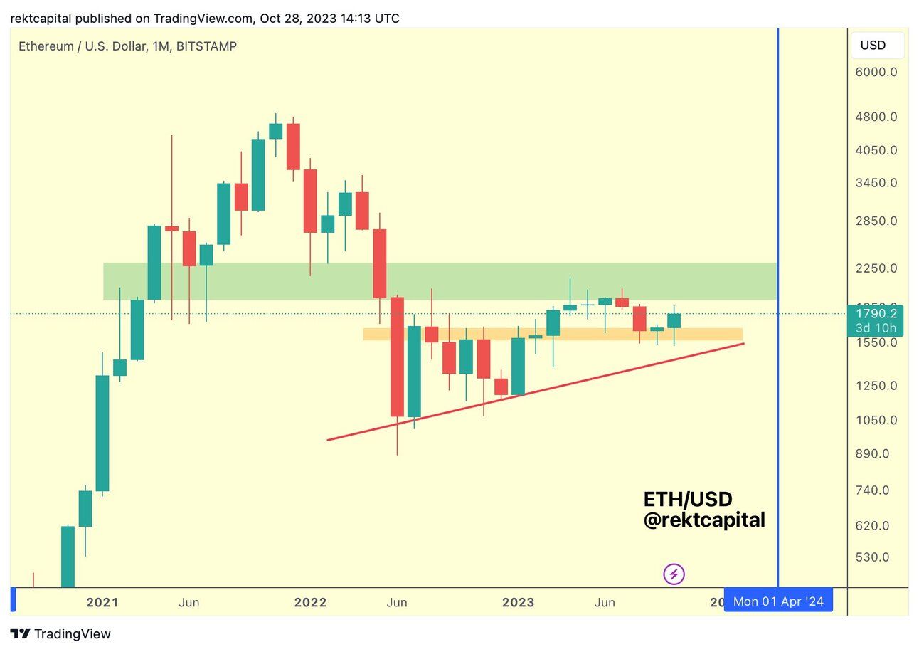 The crypto strategist is also watching the price action of Ethereum (ETH). Rekt Capital says that Ethereum looks primed for a rally after flipping resistance at $1,600 into support.