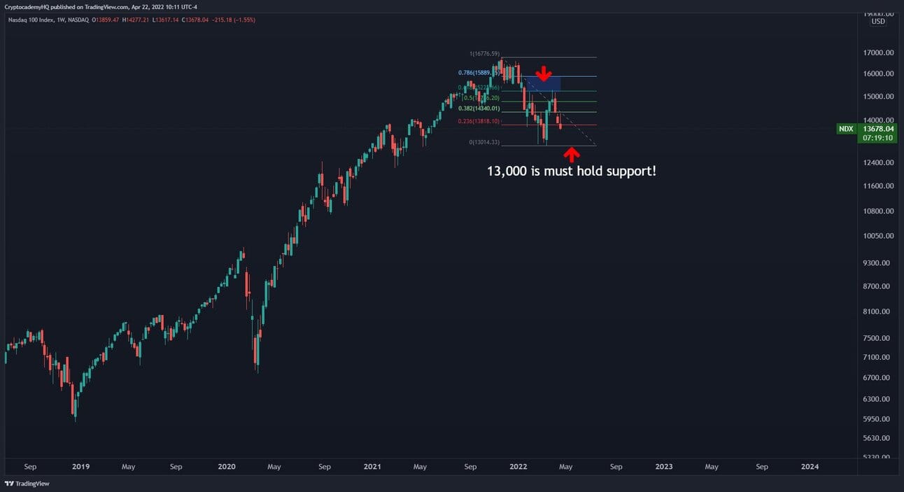 “Bitcoin aside, the next move for crypto boils down to the Nasdaq’s ability to hold above 13,000. Give that up, and the similarity strengthens.”