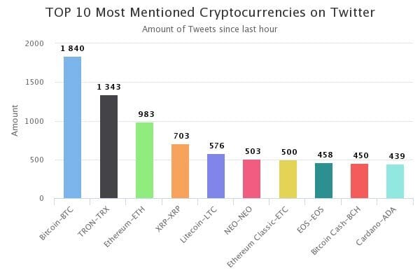 Here’s a look at the most talked about coins in the last hour on Twitter, courtesy of CoinTrendz.