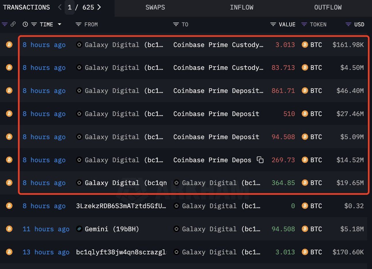 Lookonchain also spotted crypto firm Galaxy Digital depositing 1,458 BTC worth over $78 million into Coinbase Prime. Since Coinbase Prime offers trading and custody services, Galaxy Digital could have sent the BTC stack either for safekeeping or to be sold on the open market.