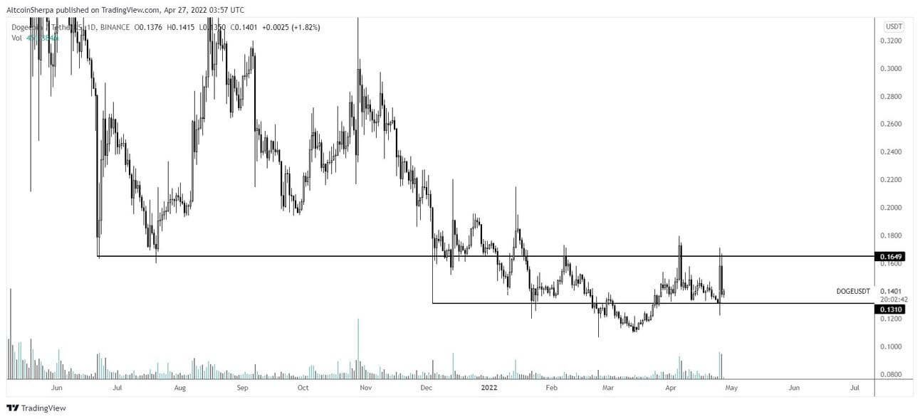 DOGE rallied by slightly over 15% earlier this week after Twitter’s board announced it had accepted Musk’s bid to buy the micro-blogging platform.