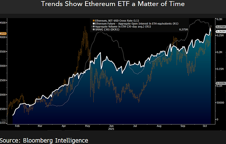 “Rapidly rising Ethereum open interest and volume show that a US ETF is only a matter of time, with positive implications for the price and negative for volatility.”