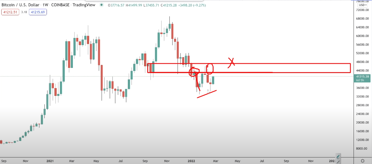 Although Cred believes that BTC is still in a sideways market, he says that Bitcoin will gather bullish momentum and ignite a 30% surge if it takes out resistance at $47,000.