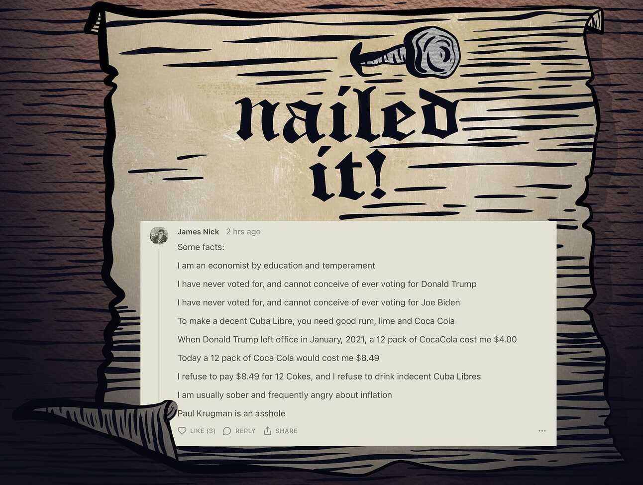“Former young person and author of numerous works of corporate fiction (business strategies). Nobody went to jail or got hurt. Plans include installing the home office ceiling fan I bought a year ago. Everything costs too much.”