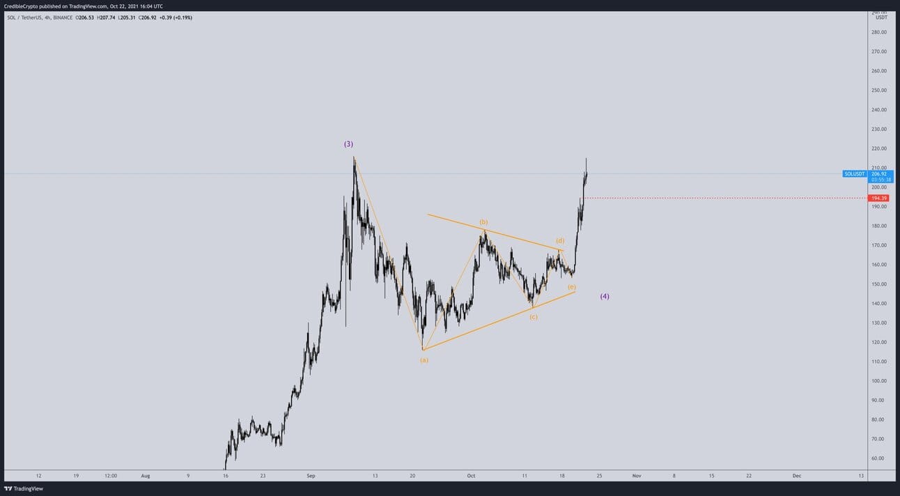 “SOL is leading the market and looks to have completed its macro 4th wave as a triangle. This implies we have begun the final fifth wave of SOL’s first macrocycle. This is going to be epic and a taste of what we will see across the board in the coming months. Expecting $500+.”