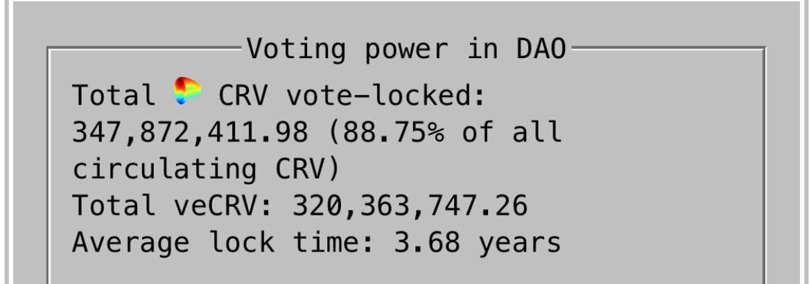 “Oh, and 89% of all circulating CRV is locked away for around 3.7 years lmao. So when we DO break out and everyone is clamoring to join in on the green candles, there is going to be a massive supply shock that sends prices even higher, faster. Get yours before it all starts… Yea so locking generates voting power – which in turn is used to boost yields for other protocols – so vote locked CRV is in high demand.”