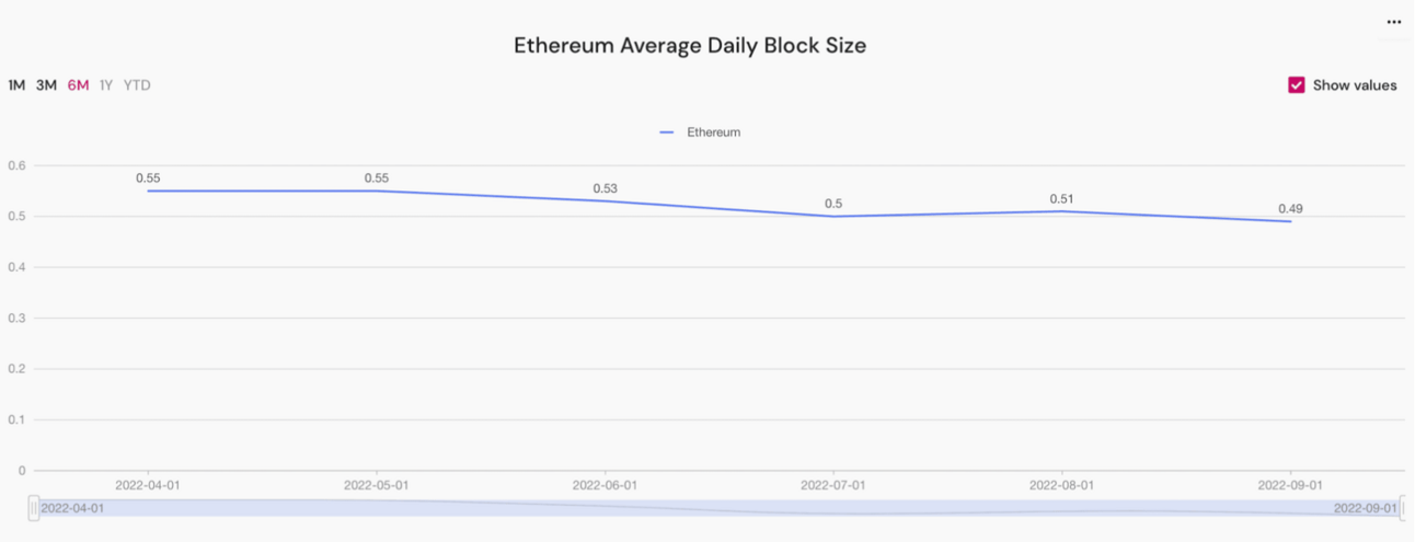 In September, the average block size was 0.49 Gb. In August, this value was 0.51 Gb. The average size of blocks mined per day is continuing to decline.