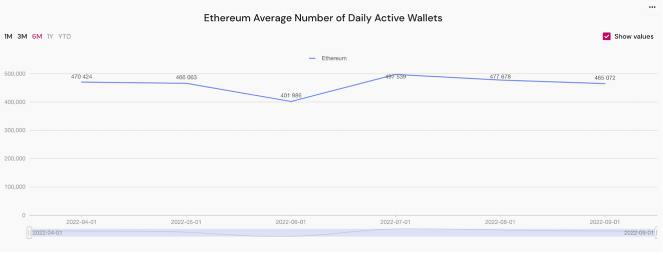 In September, the average number of unique active crypto wallets per day in the Ethereum blockchain was 465,072. In August, this figure was 477,678, so it is a decrease of 2.7%.