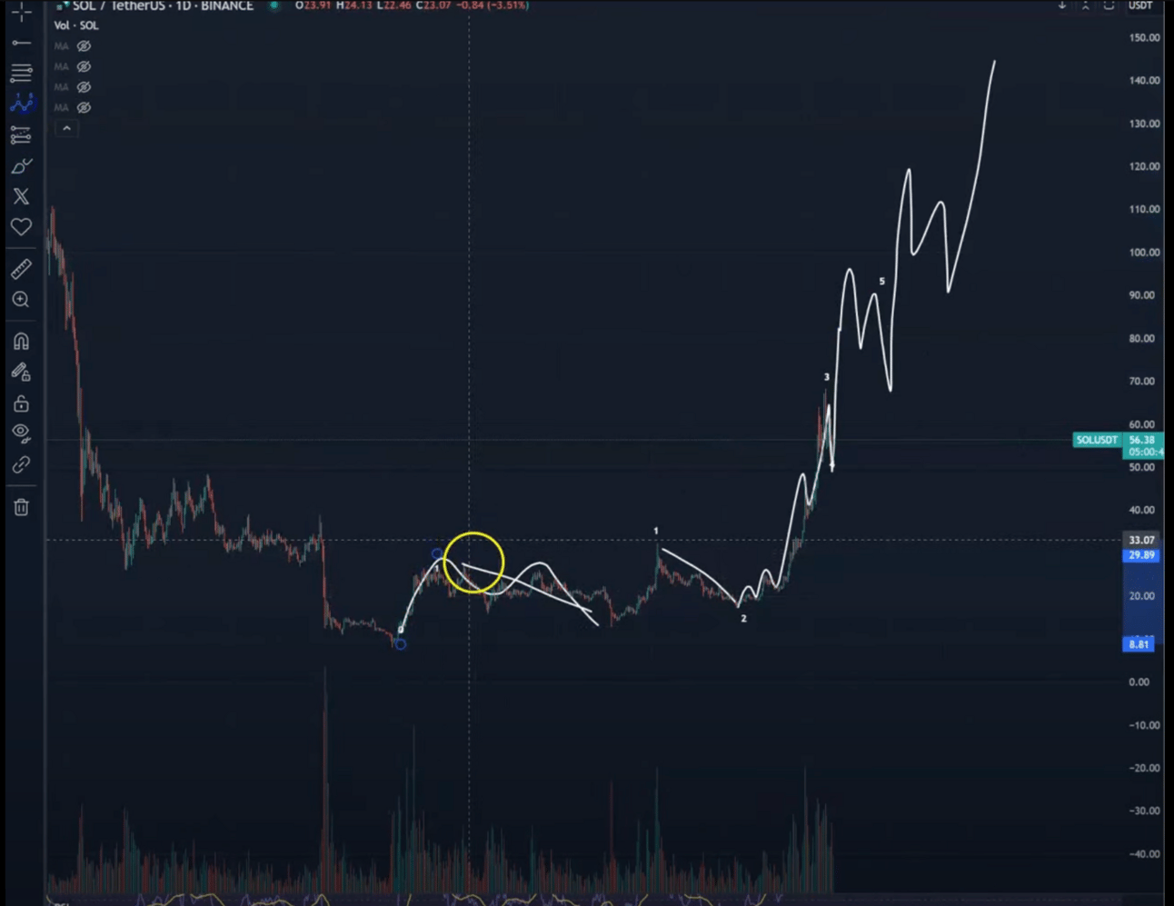 In a new strategy session, the pseudonymous analyst tells his YouTube subscribers that SOL has completed an ABC correction, priming itself for another impulse to the upside.