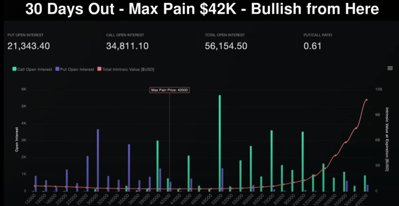 “The max pain is $42,000, and the heavy bets are to the right, and that means lots of call option buying, and in excess of where we are today.
