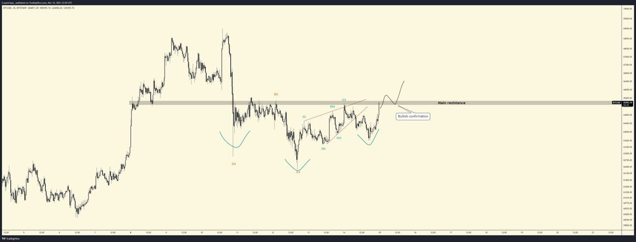 “Consolidation above $65250 – $65500 would be the bullish confirmation. It’s likely in my opinion. Once we get the bullish confirmation, the run to $100,000 starts.”